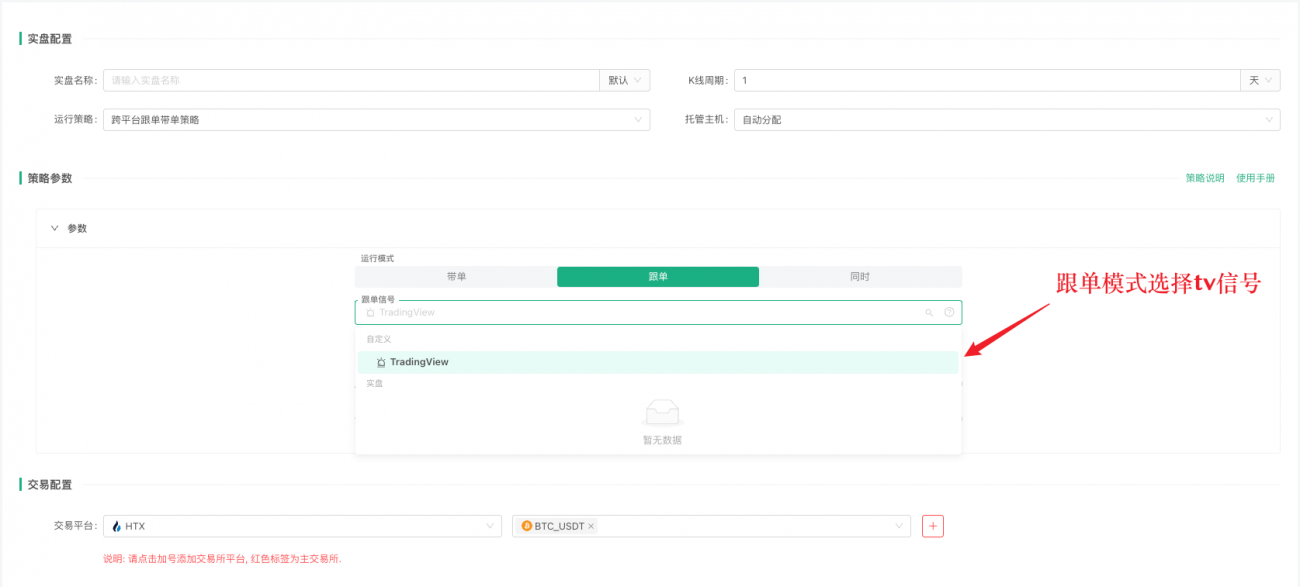 现在:TradingView说"我现在持有1个BTC",FMZ把自己的仓位调成一样