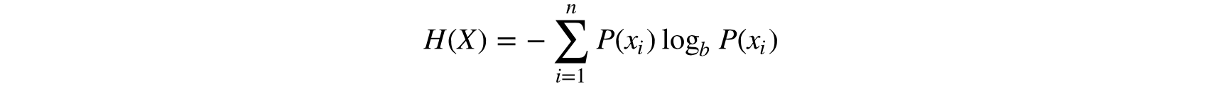 其中, n是样本的数量, P(xi)是第i个样本的概率。 b一般取2, e或10 。因为对数函数中真数小于1则对数值为0, 因此, 公式前面加符号使熵为正数。