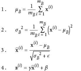 在2015年,有研究者提出,既然使用mini-batch进行操作,对每一批数据也可采用,在调用激活函数之前,先做一下normalization,使得输出数据有一个较好的形状,初始时,超参数scaling(γ)和shifting(β)进行适度缩放平移后传递给activation函数。步骤如下: