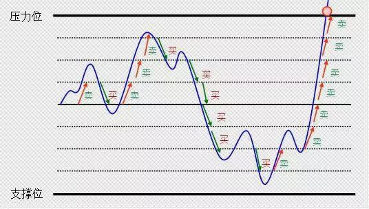 所谓网格策略,也称鱼网交易法,指以某点为基点,每上涨或下跌一定点数挂一定数量空单或多单,设定盈利目标,但不设止损,当价格朝期望方向进展时获利平仓,并在原点位挂同样的买单或卖单。