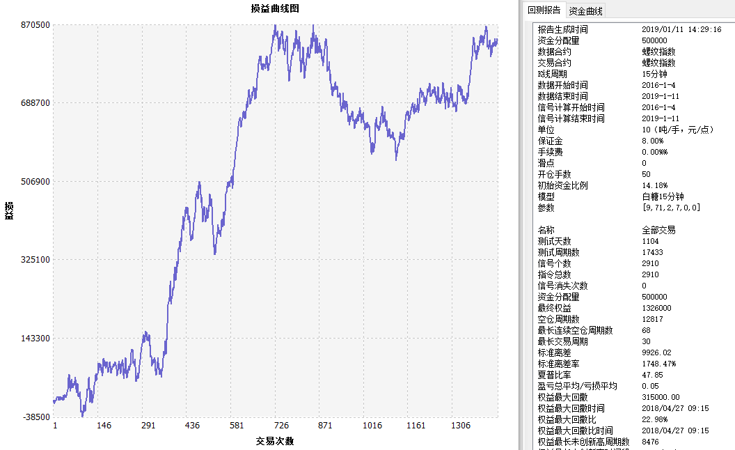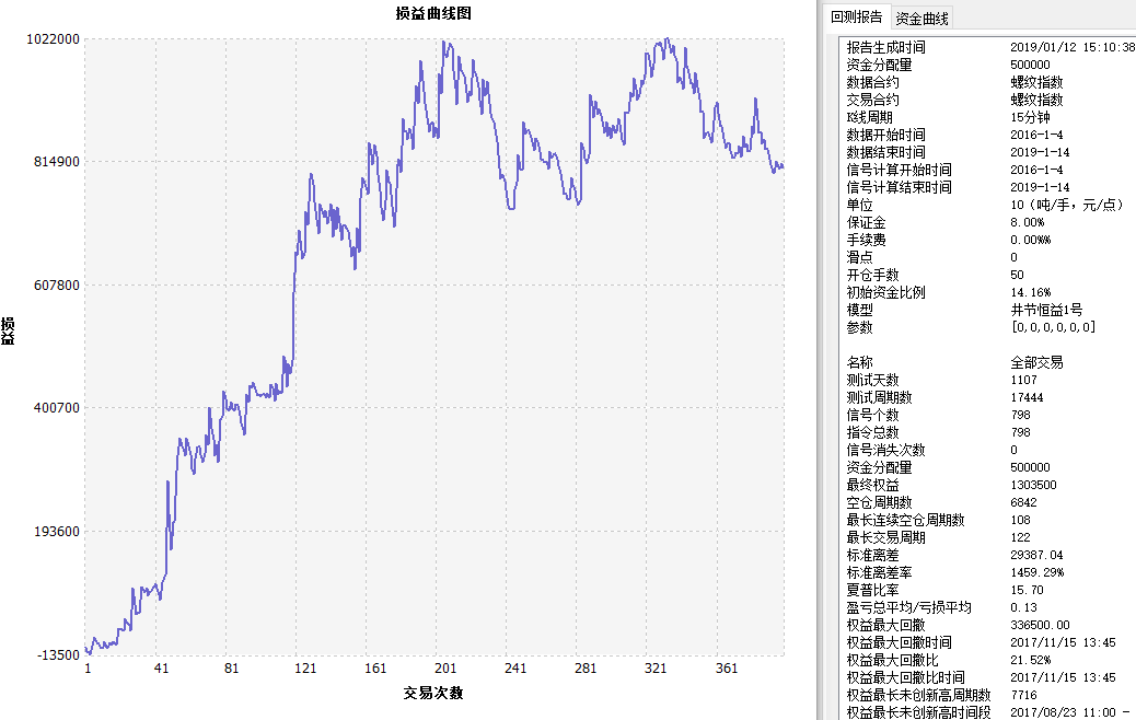 简单有效的均线机械交易模型 测算报告 螺纹指数 15分钟 超级机械交易模型 ------------------------------- 名称 全部交易 多头 空头 报告生成时间 2019/01