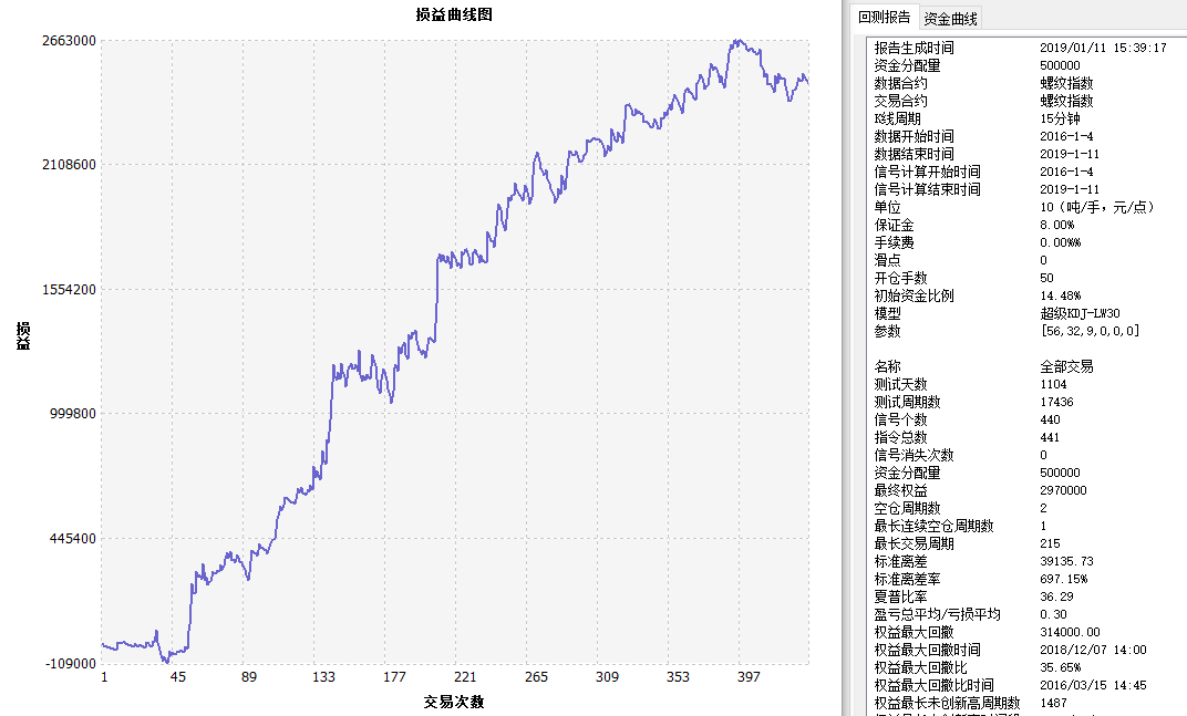 KDJ固定比例止盈止损交易策略 测算报告 ------------------------------- 名称 全部交易 多头 空头 报告生成时间 2019/01/11 14:29:16