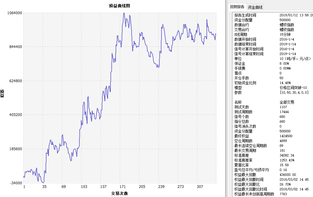 标准差突破策略 测算报告 ------------------------------- 名称 全部交易 多头 空头 报告生成时间 2019/01/12 15:10:38 资金分配量 50