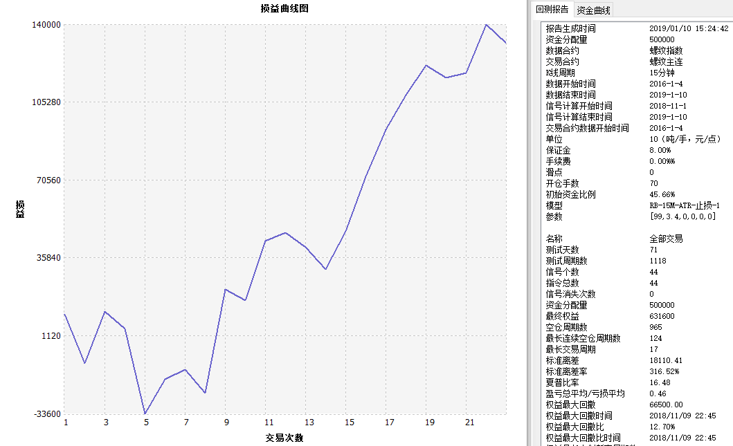 商品期货ATR+止损策略 测算报告 螺纹主连 15分钟 RB-15M-ATR-止损-1 ------------------------------- 名称 全部交易 多头 空头 报告生成时间 2