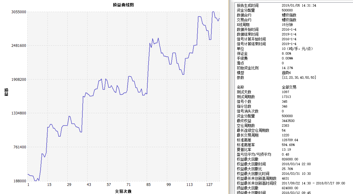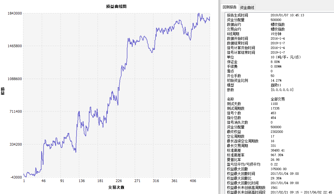 简单标准差突破策略 测算报告 ------------------------------- 名称 全部交易 多头 空头 报告生成时间 2019/01/07 10:38:37 资金分配量