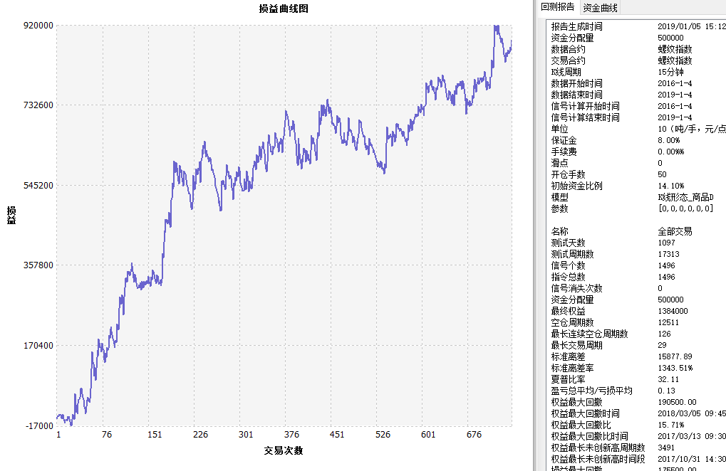 测算报告 ------------------------------- 名称 全部交易 多头 空头 报告生成时间 2019/01/05 14:22:16 资金分配量 500000
