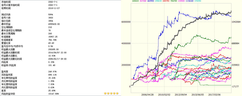 本期分享一个标准差通道策略。主要开平仓逻辑运用了标准差和移动平均线的概念。标准差可以衡量价格的波动性,如果标准差大,就说明价格波动性大,如果标准差小,就说明价格波动性小。移动平均线作为中轨,反映的是当前的均衡价格,然后加上标准差作为上轨,减去标准差作为下轨,形成一个价格包络带,并形成开平仓的依据。