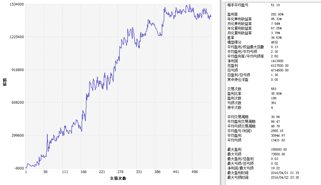 | 最大持续亏损次数出现时间 | 2016/03/14 23:30 - 2016/03/16 13:45 | ||