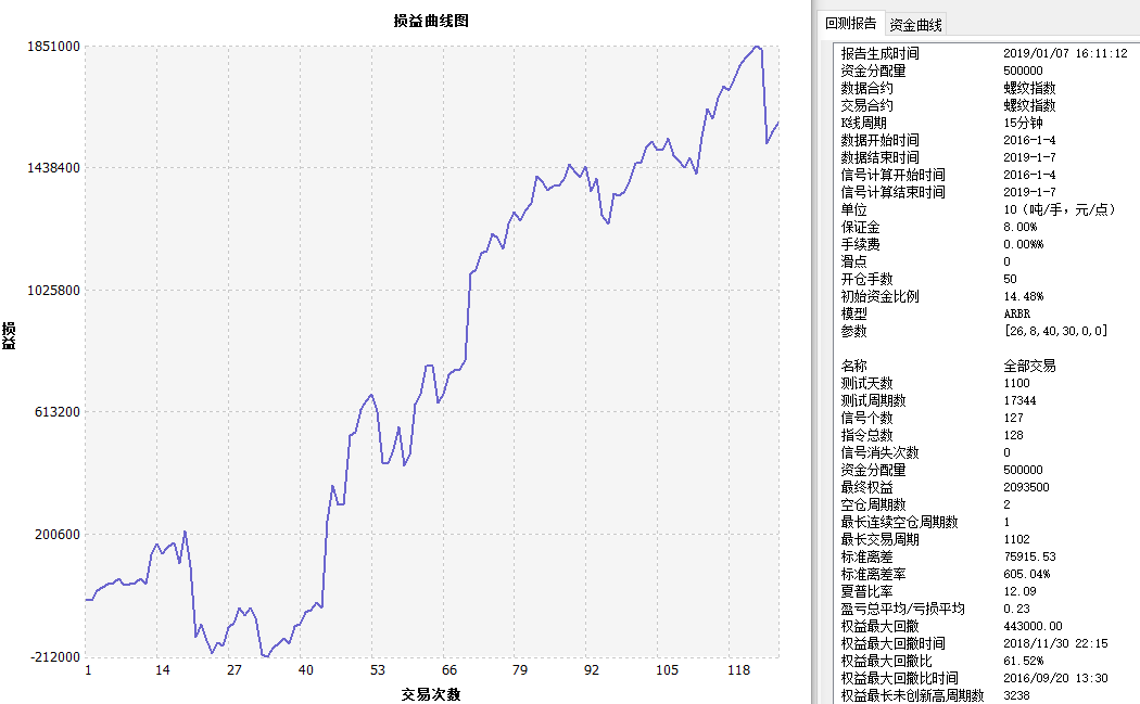 周期波幅平均交易策略 测算报告 ------------------------------- 名称 全部交易 多头 空头 报告生成时间 2019/01/09 10:58:30 资金分配量