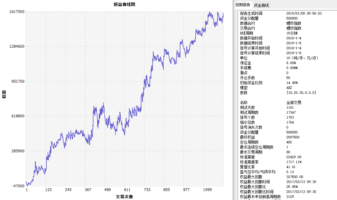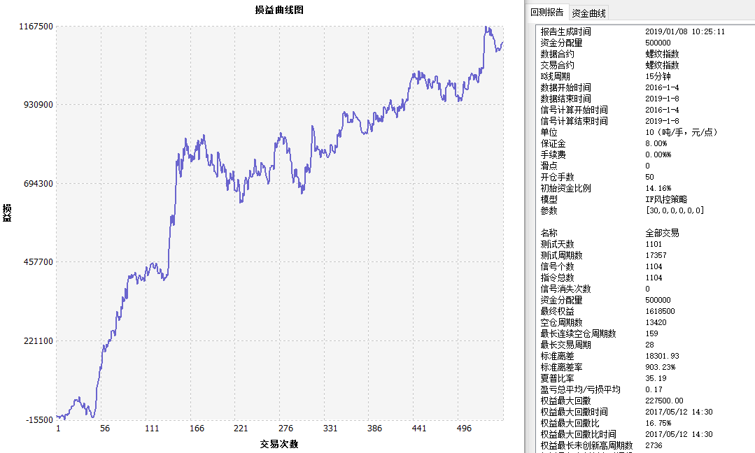 测算报告 ------------------------------- 名称 全部交易 多头 空头 报告生成时间 2019/01/08 14:56:15 资金分配量 500000