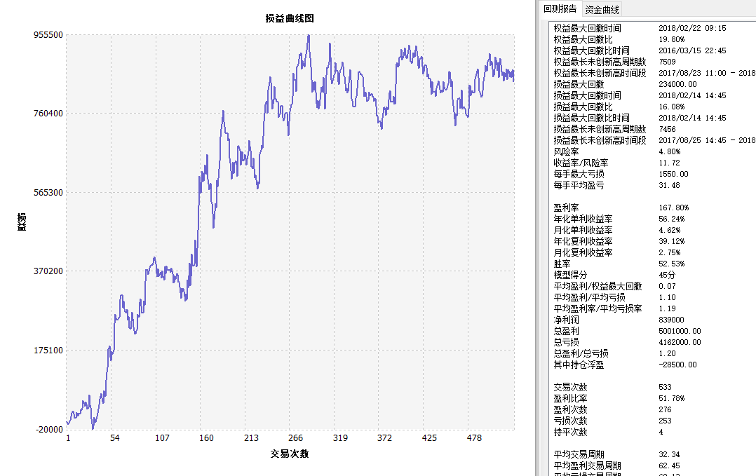 布林带短线追市策略,当超过1.5*ATR时,追市,根据布林带止损 测算报告 ------------------------------- 名称 全部交易 多头 空头 报告生成时间 2018/12