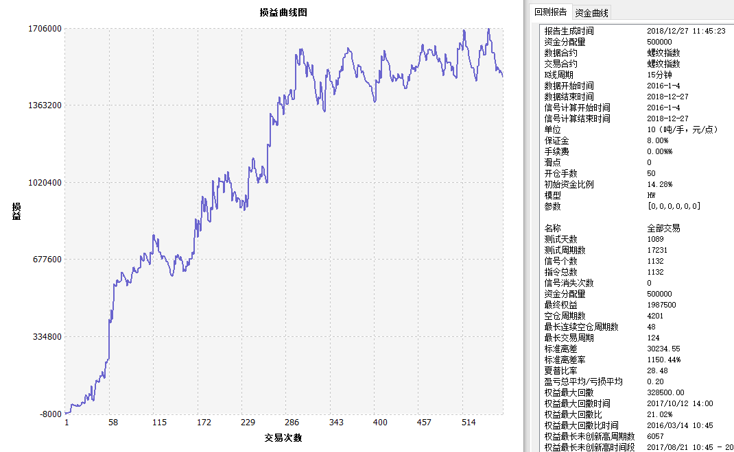 根据价格波动标准差确定上下突破的边界,在5分钟K线上表现良好 测算报告 ------------------------------- 名称 全部交易 多头 空头 报告生成时间 2018/12/2