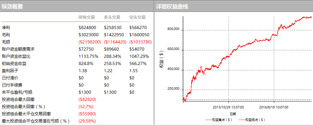 本策略尤其适合小周期K线数据,在5分钟以下K线级别,都有非常不错的回测绩效。并且策略核心参数较少,避免过度优化。由于策略属于开盘价策略,所以难免会有频繁开平仓现象,造成交易次数过多,因此受到手续费和滑点的影响比较大。