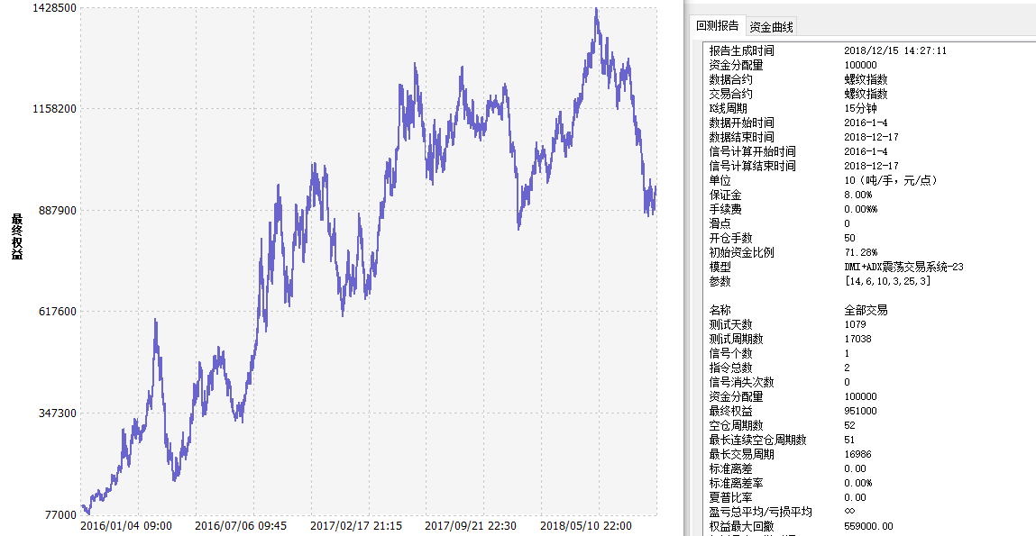策略通过ADX指标和KD指标开仓,通过D值平仓